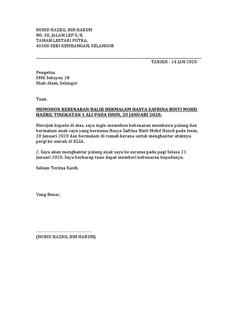 Contoh Surat Kebenaran Pulang Bermalam - The collection that comprising chosen picture and the best among others. Apr 28 2020 sekolah tinggi intelijen negara. Check spelling or type a new query.