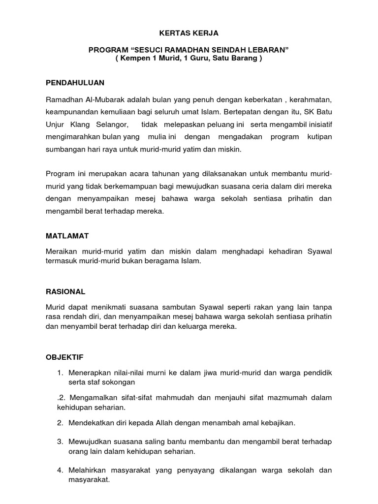 Baca versi flipbook dari KERTAS KERJA PROGRAM KAMI. Kertas kerja karnival premier zaba 2014 kolej pendeta zaba universiti kebangsaan malaysia tarikh 6 - 9 mac 2014 tempat kolej pendeta zaba. Contoh kertas kerja untuk rujukan sesiapa sahaja yang penting sasaran peserta mesti melibatkan semua pelajar Islam.